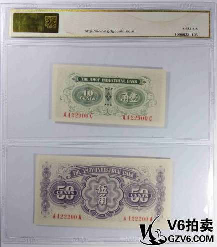 名稱: Lot176-62 GDGC-66EPQ 廈門(mén)勸業(yè)銀行日偽券壹角/伍角 共2張