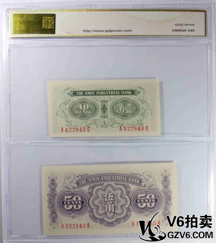 名稱: Lot176-64 GDGC-67EPQ 廈門(mén)勸業(yè)銀行日偽券壹角/伍角 共2張