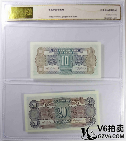 名稱: Lot176-69 GDGB-67EPQ 中央銀行1角/2角 共2張