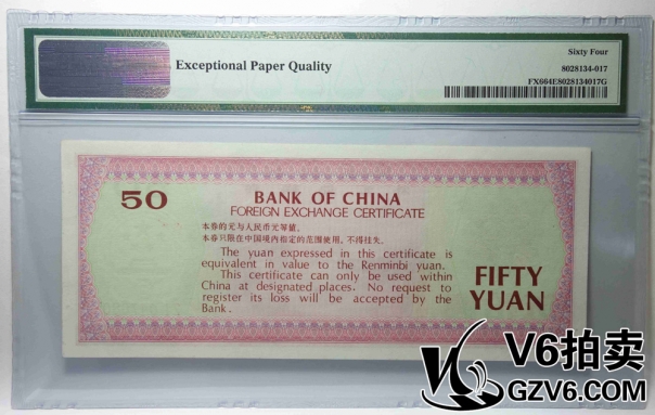 名稱(chēng): Lot176-93 PMG-64EPQ 中國(guó)銀行外匯兌換券伍拾圓 ZI047680