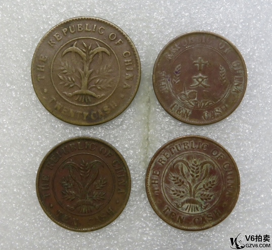 名稱: Lot82-9: 湖南省造雙旗二十文/民國開國紀(jì)念幣紅十文/民國雙旗十銅元*2 共4枚