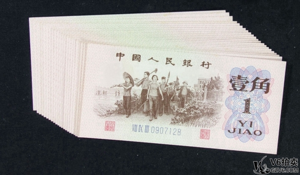 名稱: Lot82-66: 三版人民幣壹角 三冠 全連號 冠號:0907103-128(斷104/116/125) 共22張 微黃折 燈下有斑 8.5品