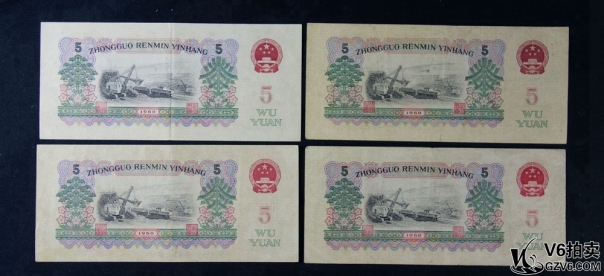 名稱: Lot82-71: 三版人民幣煉鋼伍圓 共4張 有黃折 燈下微斑 8品