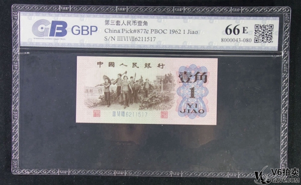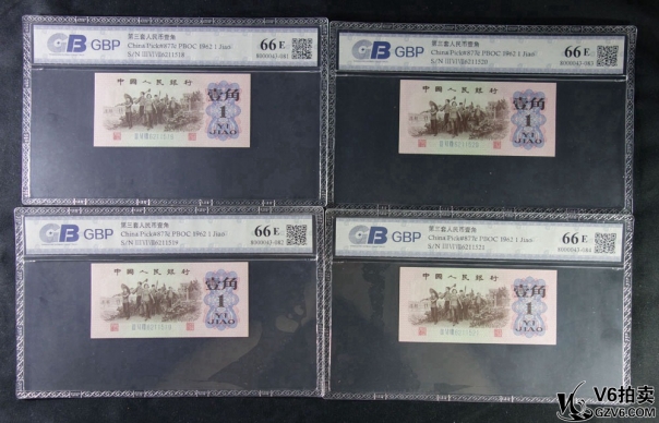 名稱: Lot82-72: CBP-66E-三版人民幣壹角 三冠 5連號 冠號:6211517-521 共5張