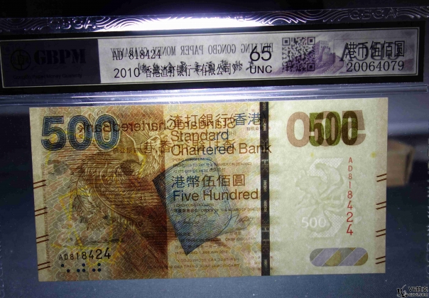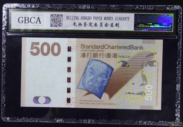 名稱: Lot82-87: GBCA-65UNC-2010年香港渣打銀行500元 冠號:AD818424