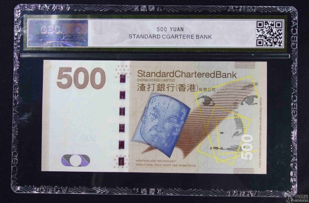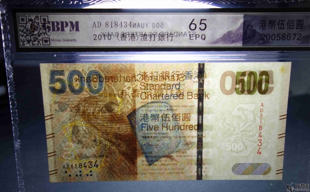 名稱: Lot82-88: GBCA-65EPQ-2010年香港渣打銀行500元 冠號:AD818434