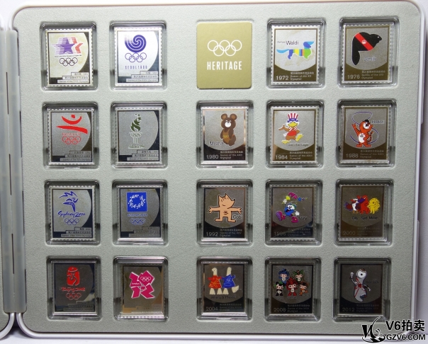 名稱: Lot82-149: 歷屆夏季奧運會會徽和吉祥物紀(jì)念38枚銀章每枚1g 帶盒證/2016里約奧運會徽2枚2g 帶盒證