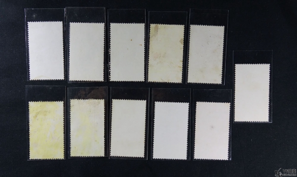名稱: Lot82-155: 文1 毛主席語(yǔ)錄 11全 蓋戳 有黃折 背貼紙 部分邊緣輕微撕裂 中品
