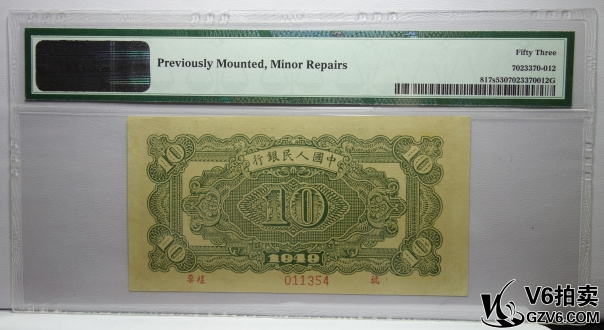 名稱(chēng): Lot95-88: PMG-53-1949年拾圓 黃火車(chē) 票樣011354