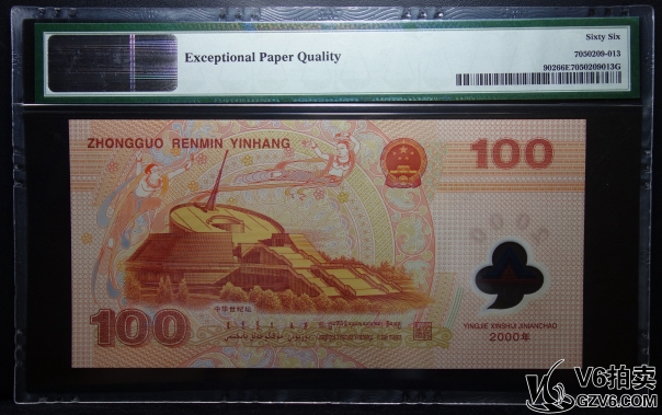 名稱: Lot95-130: PMG-66EPQ-2000年龍鈔壹佰圓 J03014555 豹子號
