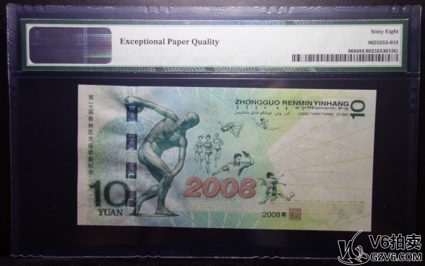 名稱: Lot95-132: PMG-68EPQ-2008年奧運(yùn)鈔拾圓 J02106667