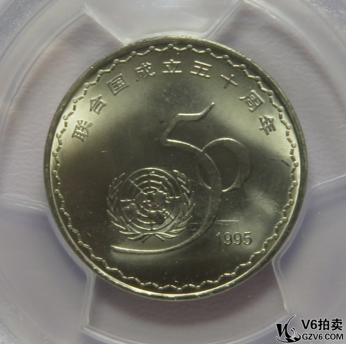 名稱: Lot95-146: PCGS-SP65 聯(lián)合國成立五十周年1圓 樣幣