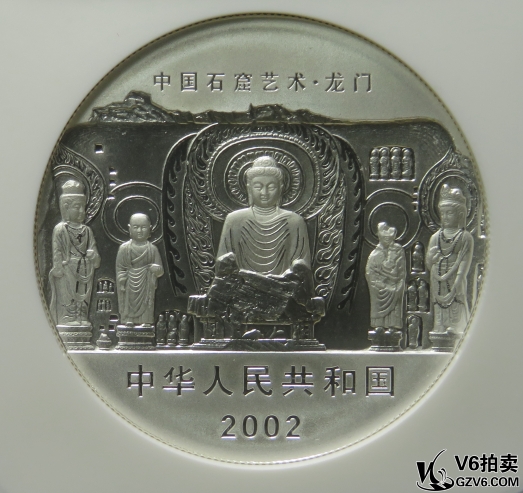 名稱: Lot95-163: NGC-PF70-2002年龍門(mén)石窟2盎司銀幣 帶證無(wú)盒
