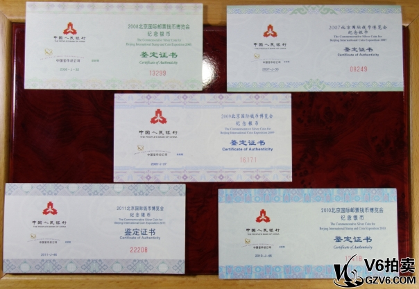 名稱: Lot95-164: 2007-2011北京國際郵票錢幣博覽會紀(jì)念1盎司銀幣 共5枚 帶盒證