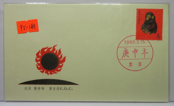 名稱: Lot95-181: T45猴首日封一個(gè) 蓋戳 上品