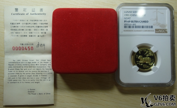 名稱: Lot95-233: NGC-PF69-1991年辛未生肖羊8g金幣 帶盒證