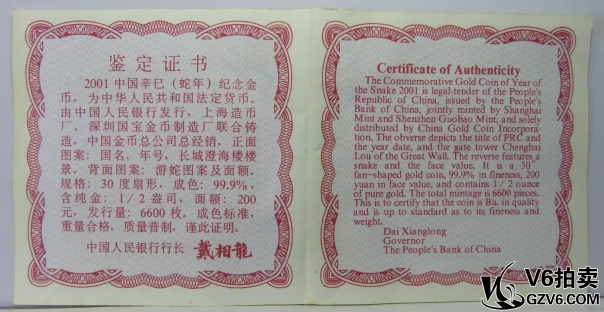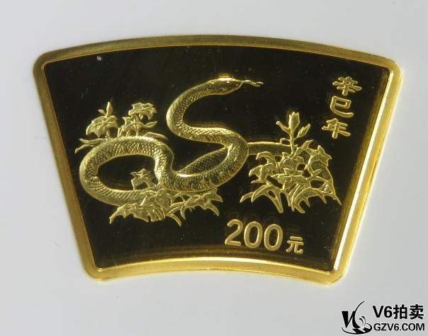 名稱: Lot95-236: NGC-MS69-2001年辛生肖蛇1/2盎司扇金幣 帶盒證