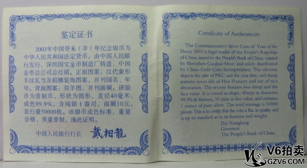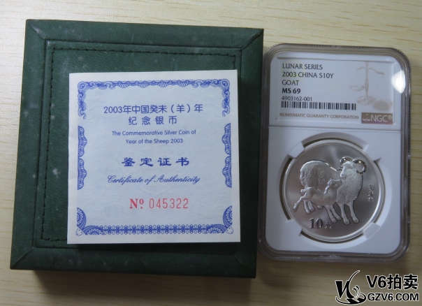 名稱: Lot95-237: NGC-MS69-2003年癸未生肖羊1盎司銀幣 帶盒證