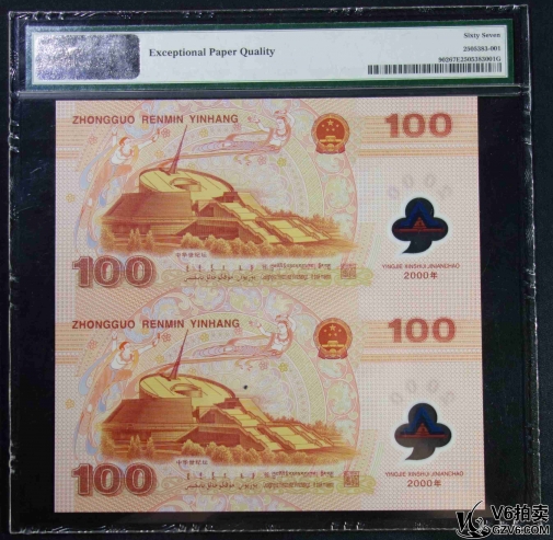 名稱: Lot95-244: PMG-67EPQ-2000年龍鈔二連體鈔 J00193150/00203150 帶證書